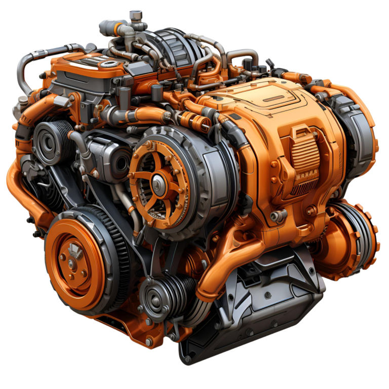 Un moteur diesel reconditionné, brillant et propre, avec des détails visibles comme les cylindres, les injecteurs et les courroies. Cette pièce est un incontournable pour les camions lourds et son aspect professionnel et technique en fait un élément visuel fort.