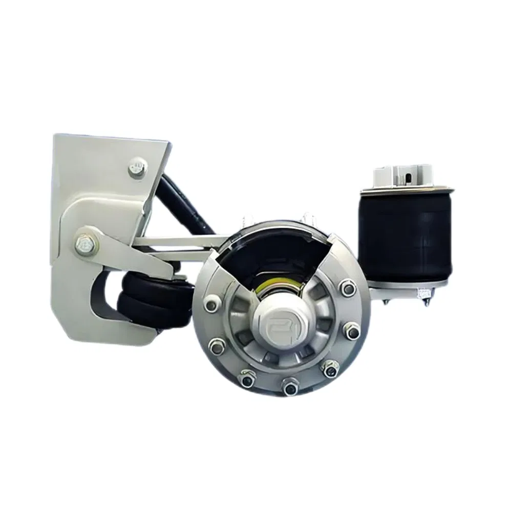 Une suspension pneumatique haute performance, avec des composants en acier et des ressorts visibles. Cette pièce est essentielle pour le confort et la stabilité des camions, et son design technique en fait un élément visuel intéressant.